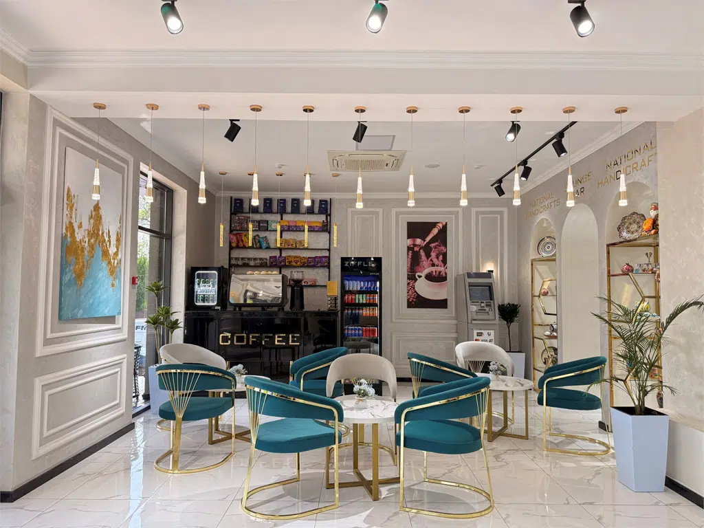 Mehmonxona lobbi barida siz qo'shimcha haq evaziga ichimliklar va gazaklar olishingiz mumkin.